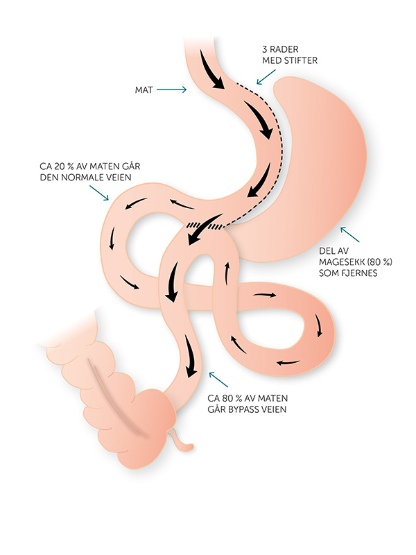 Samtidig går ca. 20 % av maten den vanlige veien gjennom tolvfingertarmen. Dette er positivt fordi det hjelper kroppen med å ta opp viktige næringsstoffer og holde blodsukkeret stabilt.